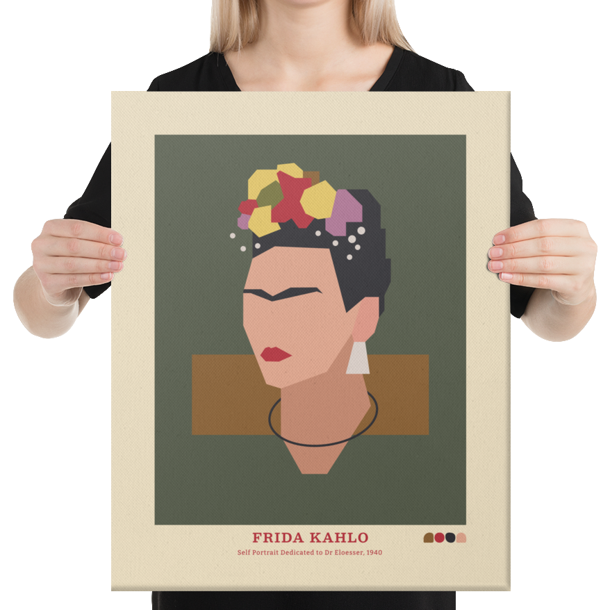 El Autorretrato de Frida Kahlo dedicado al Dr. Eloesser inspiró esta impresión en lienzo. Su impresión vívida y resistente a la decoloración te enamorará.