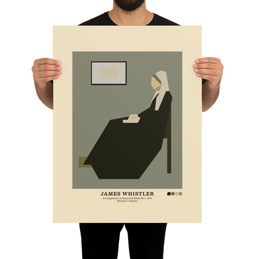 Museum-quality posters made on thick matte paper, with a design inspired by James Whistler's Arrangement in Grey and Black No.1, famously known as Whistler's Mother. The geometric portrait offers a contemporary interpretation of her work, adding a wonderful accent to your room and office.