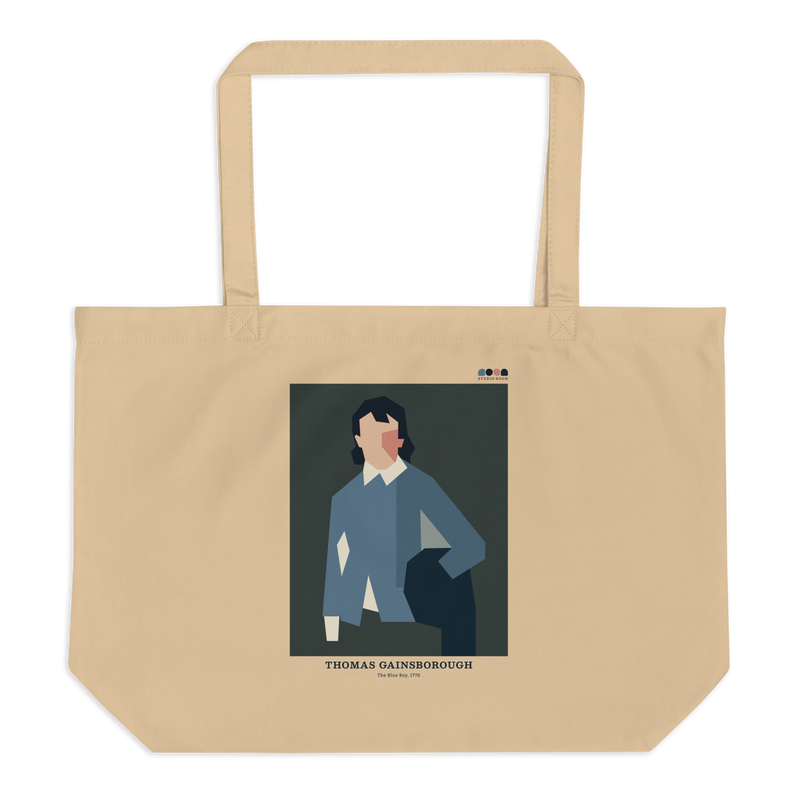 Bag your goodies in this organic cotton tote bag with a geometric design inspired by Thomas Gainsborough's The Blue Boy. With your choice of standard or large tote, printed or embroidered, there’s more than enough room for groceries, books, and anything in between.
